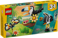 Fai un viaggio su un’isola tropicale per giocare con 3 diversi bellissimi animali. Guarda il simpatico tucano appollaiato su un ramo fiorito che sbocconcella una fetta di anguria. Per ammirare altri animali, ricostruiscilo in una splendida farfalla con ali mobili o un colorato pesce tropicale che nuota nel mare. Cosa sceglierai? Sei tu a decidere con questo divertente set 3 in 1!