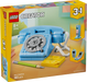 Torna indietro nel tempo con questo divertente set Telefono retrò LEGO® Creator. Solleva il ricevitore, muovi il cavo, ruota il quadrante e fai una telefonata con questo elegante telefono degli anni ’60. Ricostruiscilo in un telefono degli anni ’80 con grandi pulsanti su una base di ricarica o in 2 piccoli telefoni degli anni 2000. Cosa costruirai? Sei tu a decidere con questo set 3 in 1!